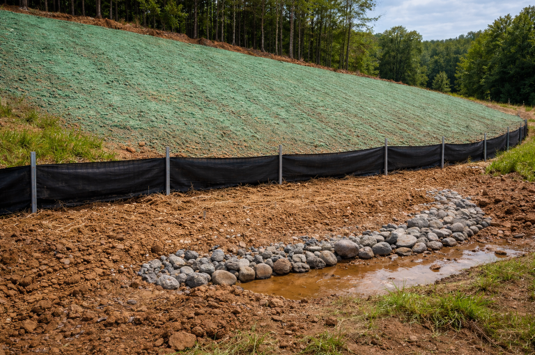 Erosion and sediment control measures are professionally installed and maintained to prevent sediment discharge and protect site compliance. All work is performed in accordance with federal, state, and local regulatory requirements..